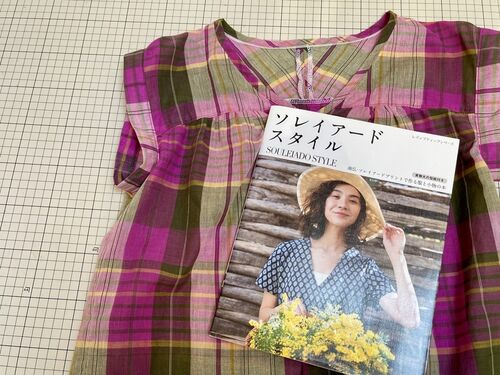 Vネックプルオーバーを作りました! 「ソレイアードスタイル」からVネックプルオーバーを作りました。 無印良品で見かけた、バーバリー風なマドラスチェックのブラウス 涼し気でいいな~と気になっていました(^^)/ 無印良品 婦人 マドラスチェック スリーブ…